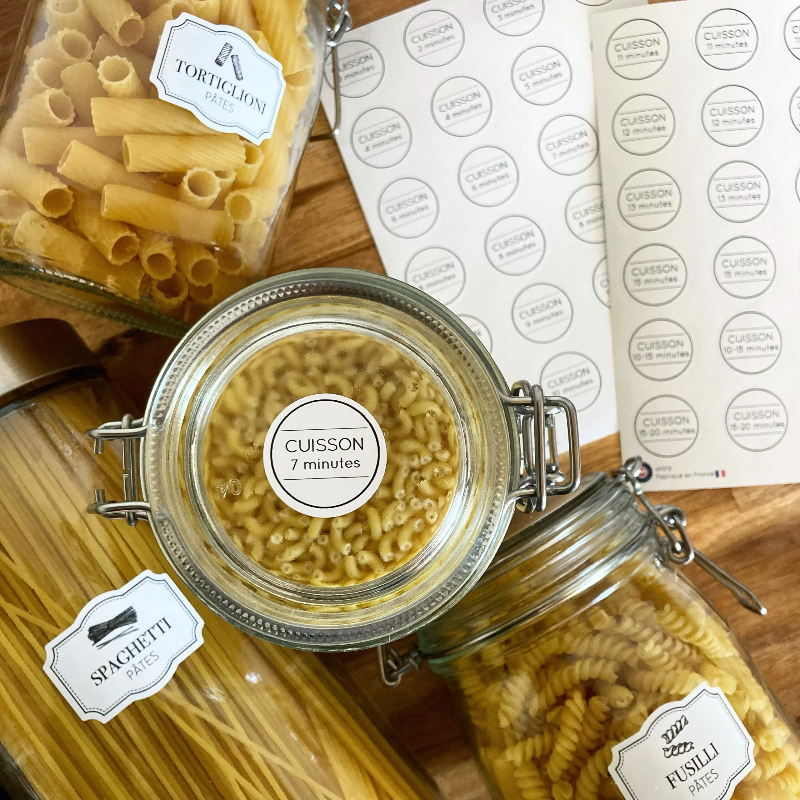 24 stickers à coller sur vos bocaux pour indiquer les temps de cuisson de vos produits.