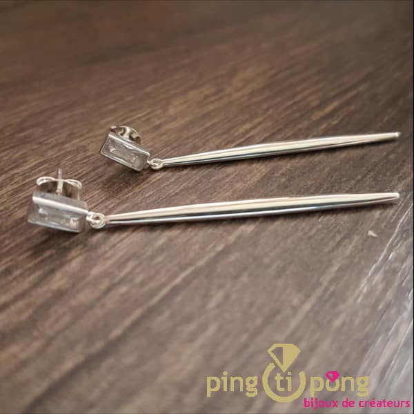 Magnifiques boucles en argent rhodié et pierre naturelle dans un cadre en argent.