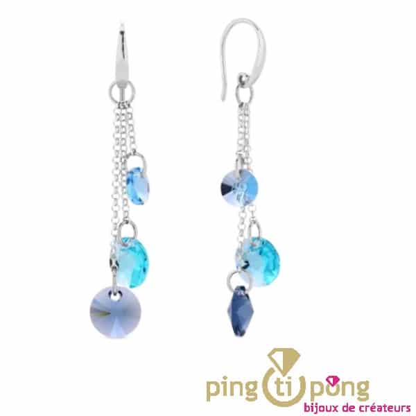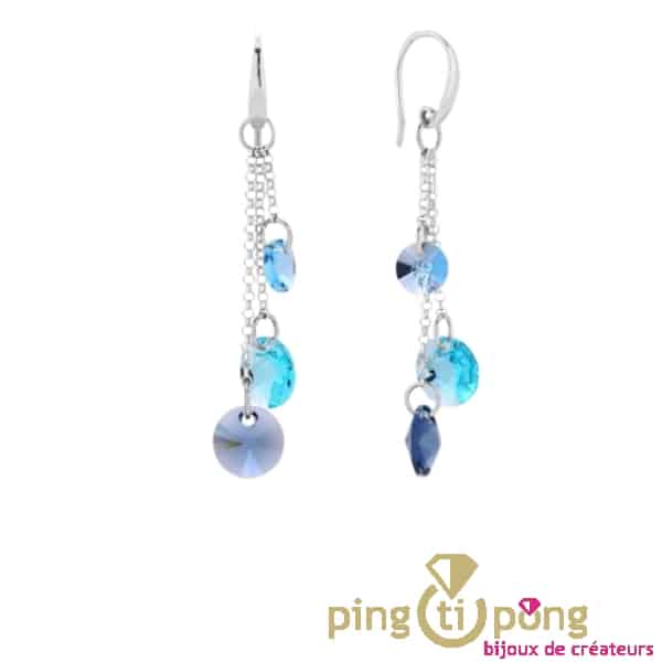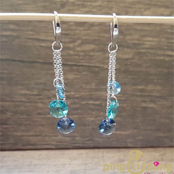 Les trois chaînettes en argent sont ornées de cristaux du plus célèbre fabricant de couleur Aquamarine, Light Turquoise et Denim Blue.