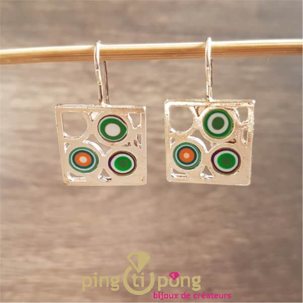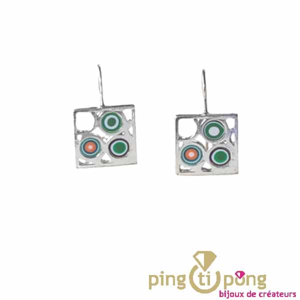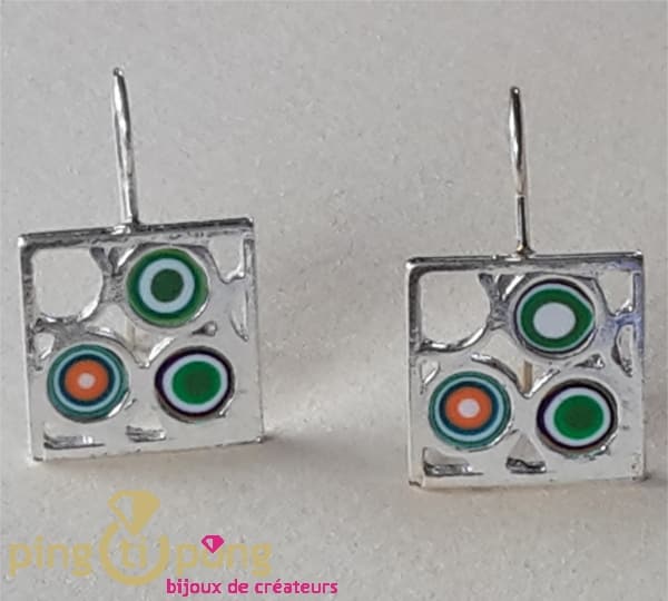 Boucles d’oreilles artisanales carrées plaquées en argent réalisées en Espagne par le créateur Pastacuita.
