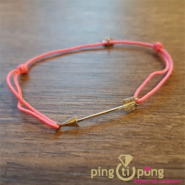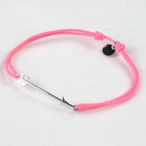 Bracelet argent femme de la marque L by L’AVARE : flèche en argent 925 rhodié montée avec une lacette coton rose