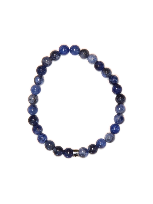 Bracelet élastique composé de perles en pierre naturelle de sodalite.
