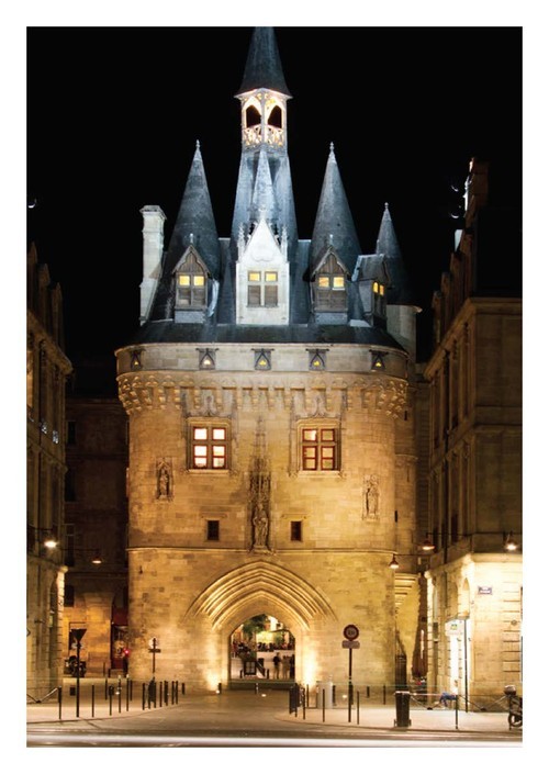 Carte postale de la Porte Cailhau la nuit à Bordeaux