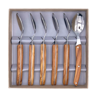 Coffret 6 Cuillères dessert Le Thiers® manches en bois d’olivier – BJB
