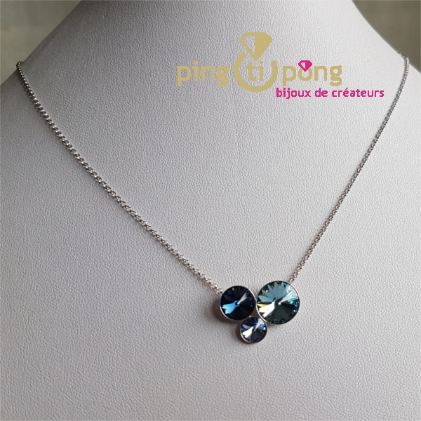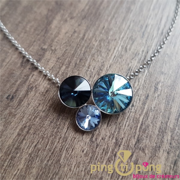 Les cristaux de luxe utilisés sont tous les trois des dômes délicatement taillés dans trois bleu différents.
