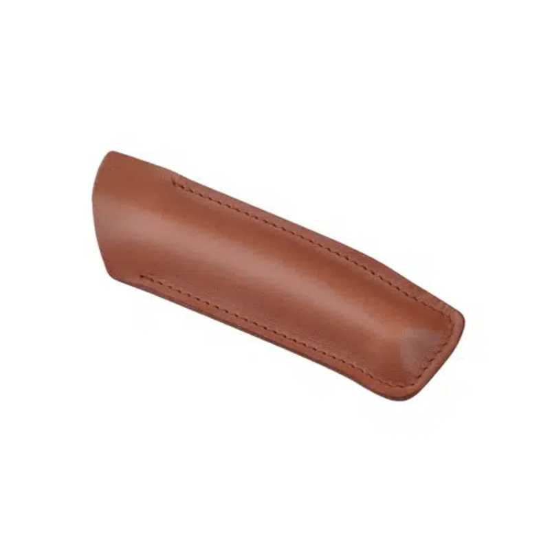 Le couteau est livré dans une boîte cartonnée, avec un étui en cuir pleine fleur marron pour le protéger avec style.