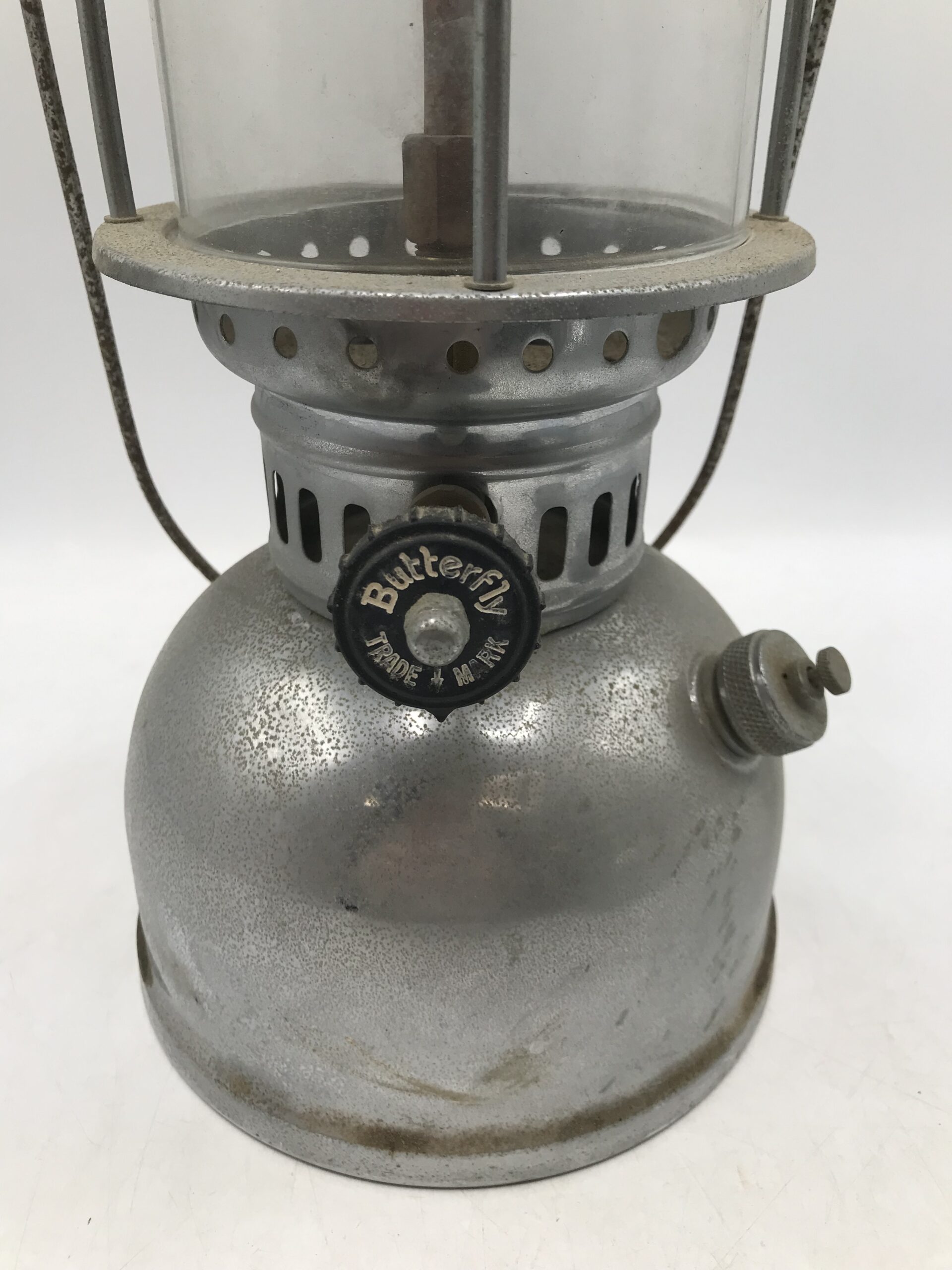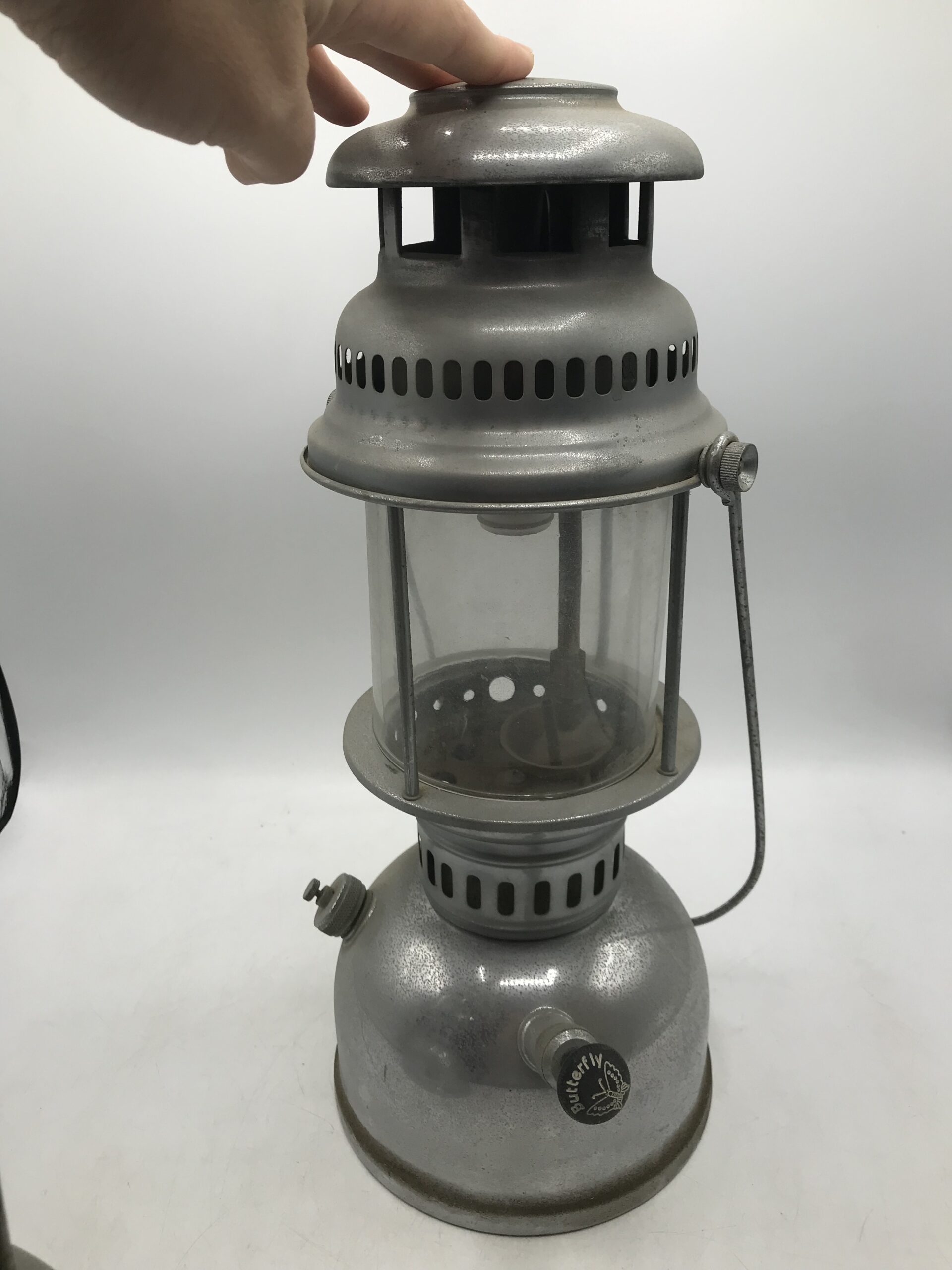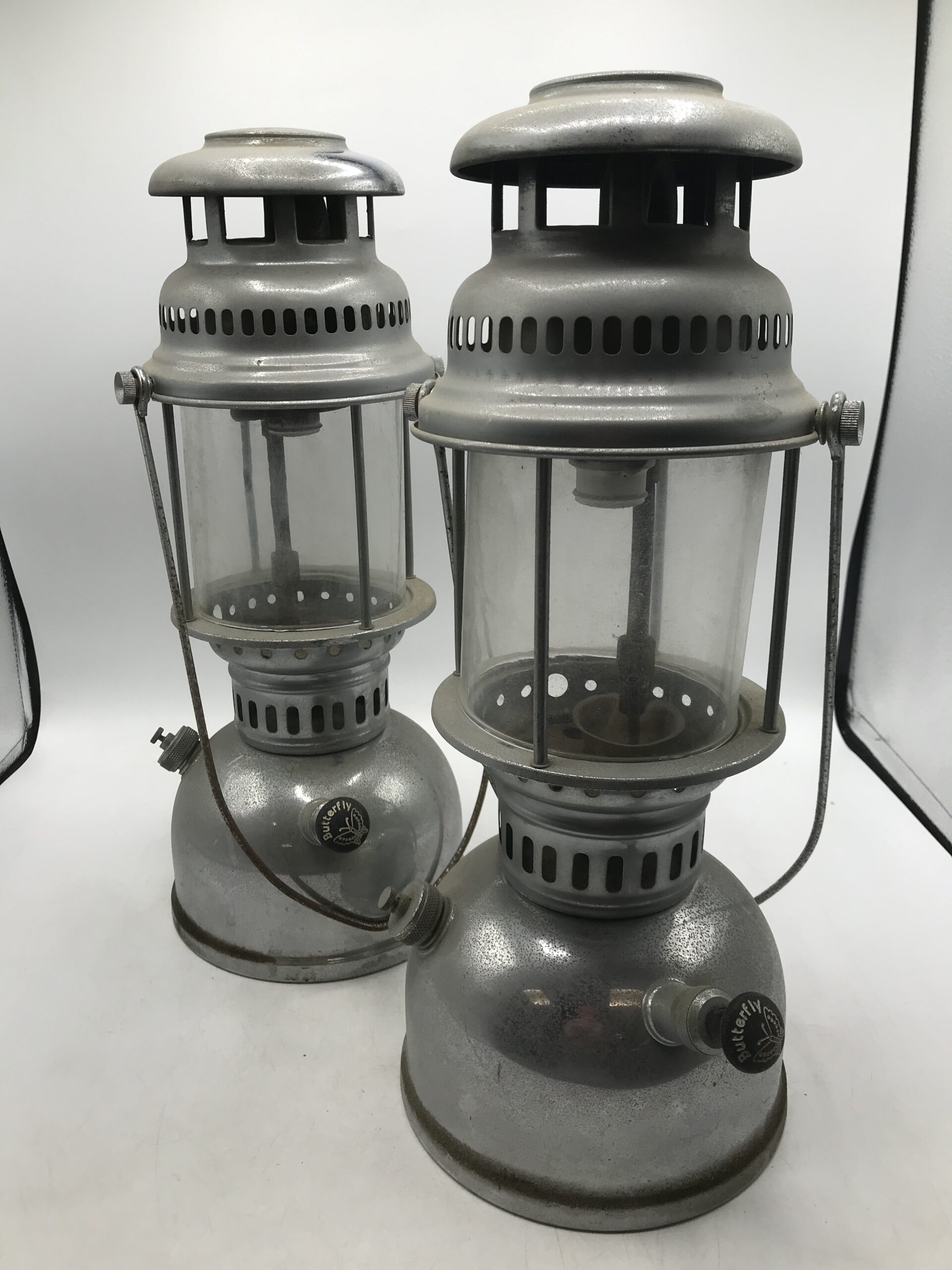 Voici donc deux lampes à pression au kérosène de la marque Butterfly. Les lampes sont dans leur jus, elles mériteront un bon nettoyage. A noter qu’elles sont en superbe état une fois nettoyé (cf photos) j’ai testé sur le haut regardez les photos.