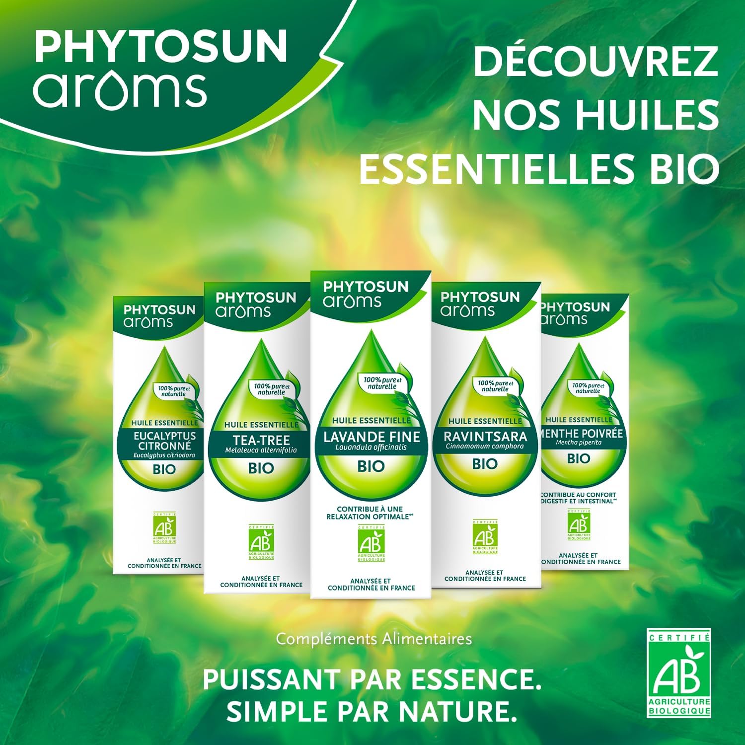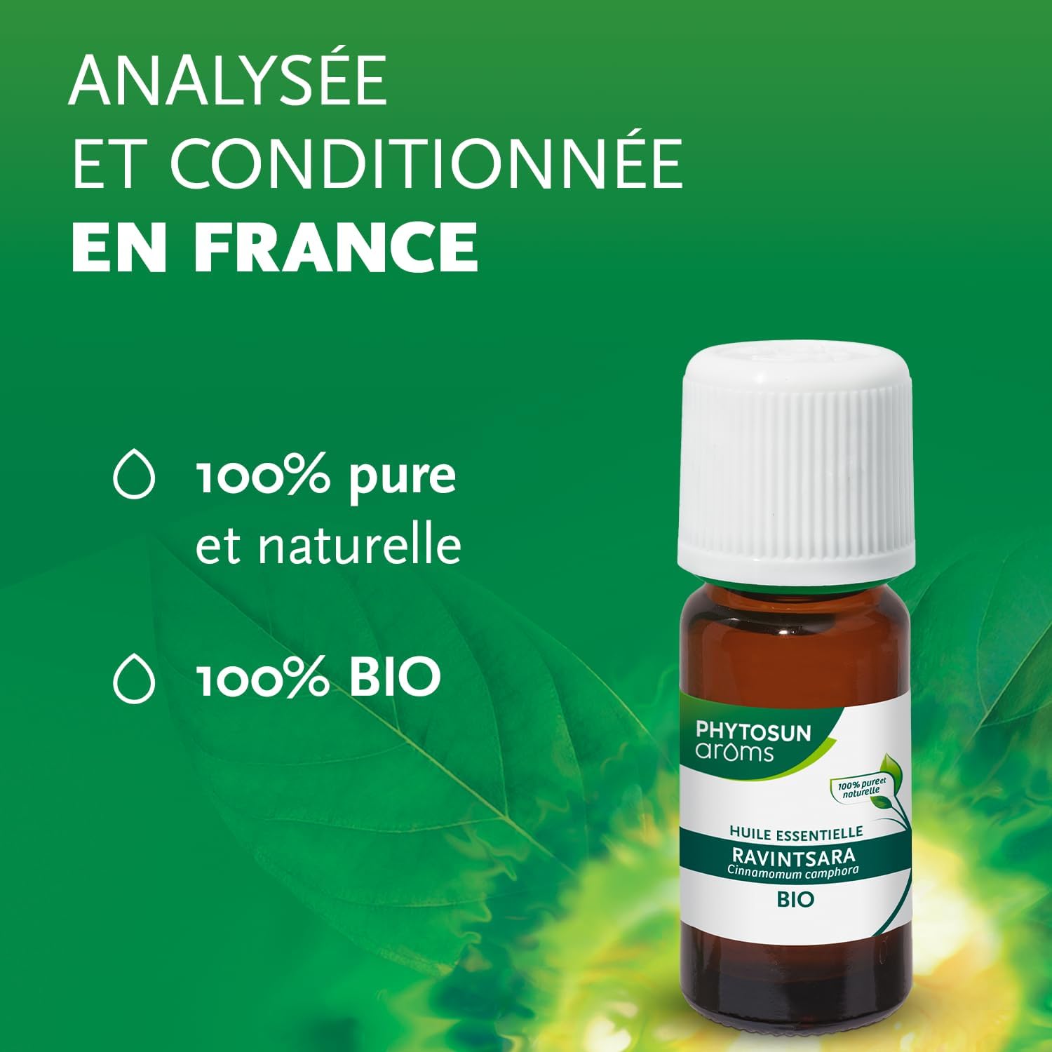 PHYTOSUN AROMS – Huile Essentielle Ravintsara Bio – HEBBD – 100 % Pure & Naturelle- Votre alliée pour l’hiver – 100% Bio – Analysée & Conditionnée en France – 30 ml