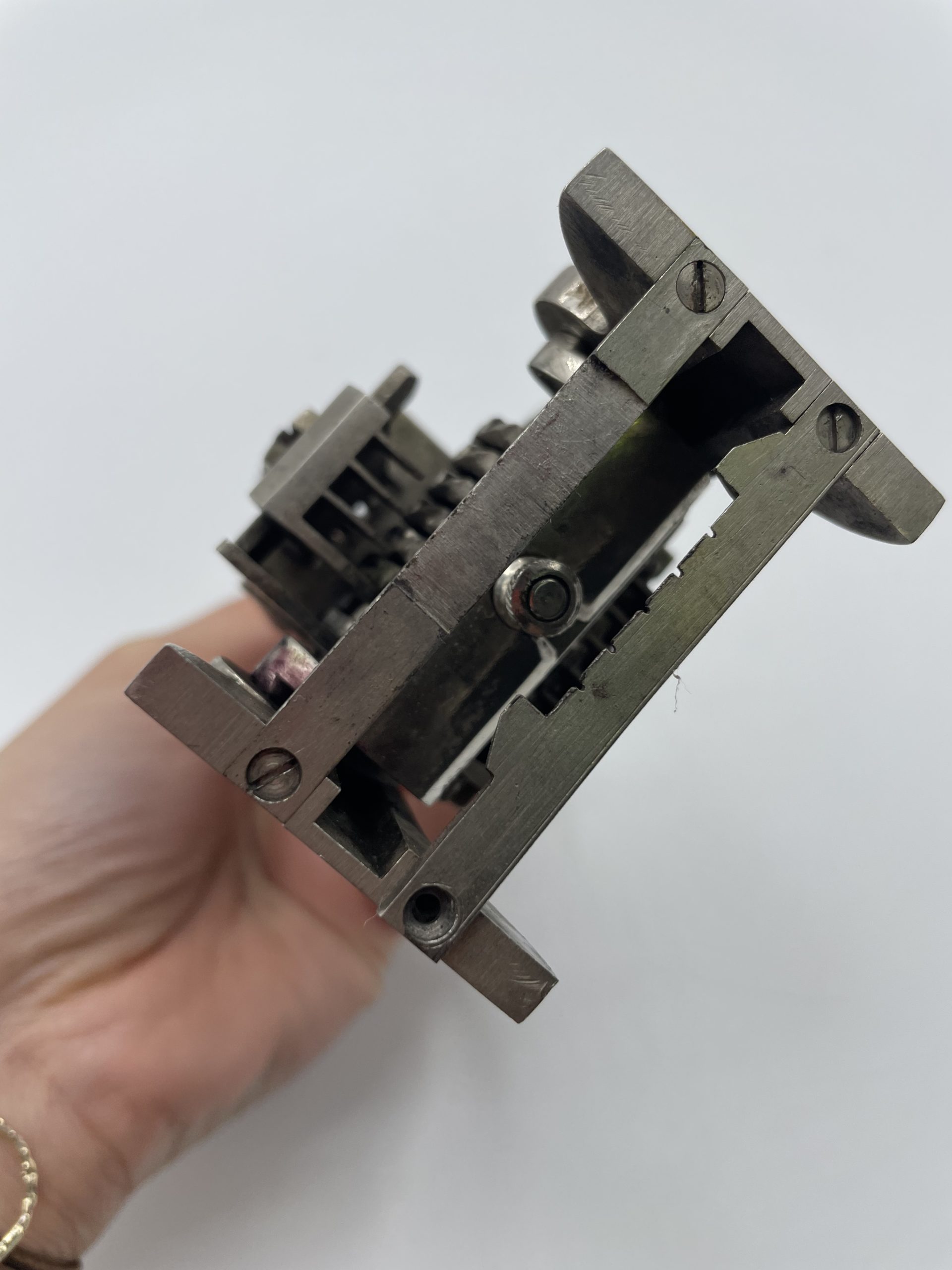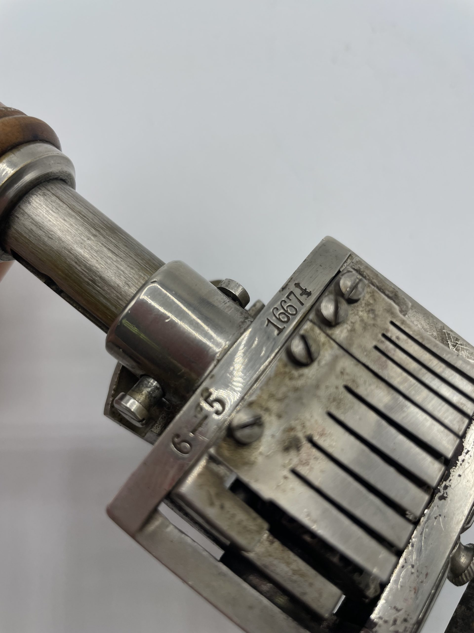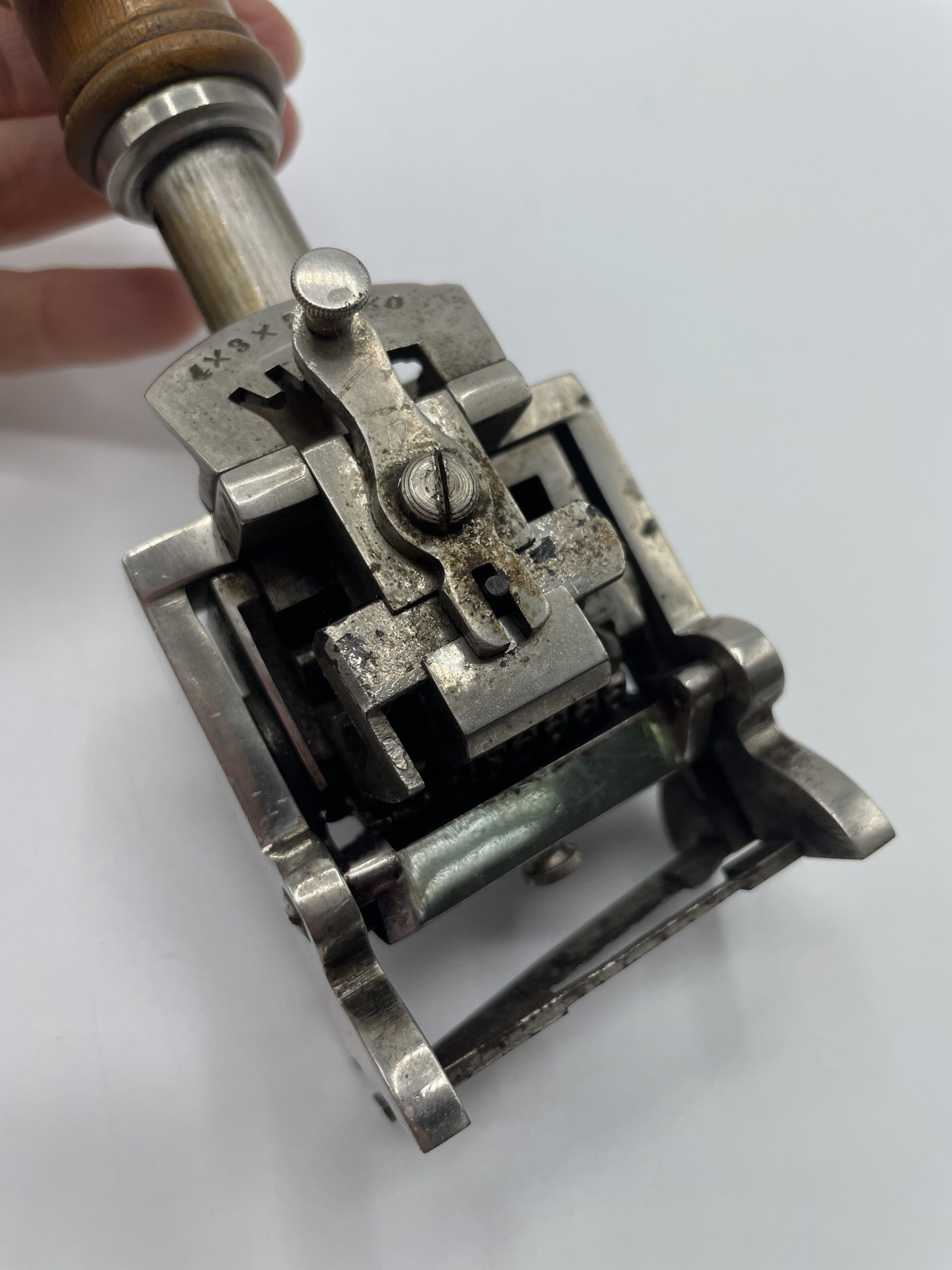 Amateur d’objets ancien et de collection vous ne pouvez passer à côté de ce superbe tampon encreur. Vintage des années 50, ce sublime tampon a sa poignée en bois et il est équipé de numéros chromés et l’on peut choisir de tamponner une suite de numéros ou de dates qui défilent automatiquement. Vintage,d es traces d’usure sont à prévoir (cf photos) jolies arques du temps passé. Un joli tampon ancien à collectionner !