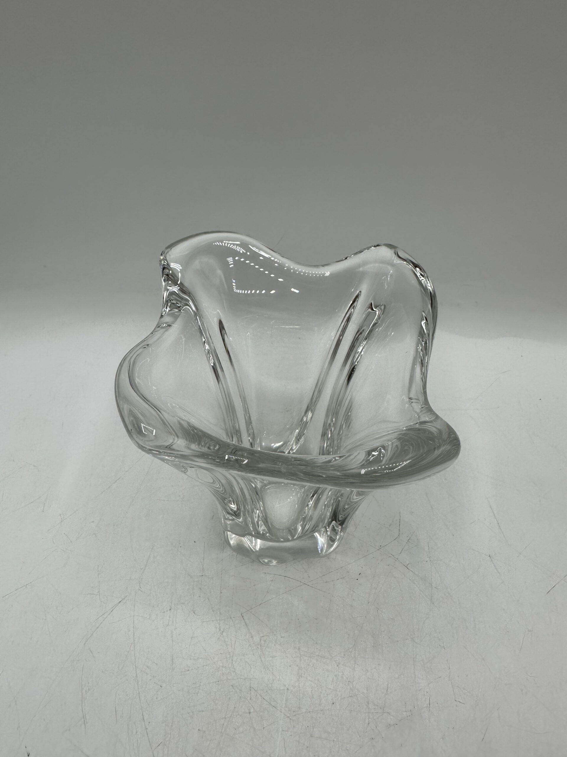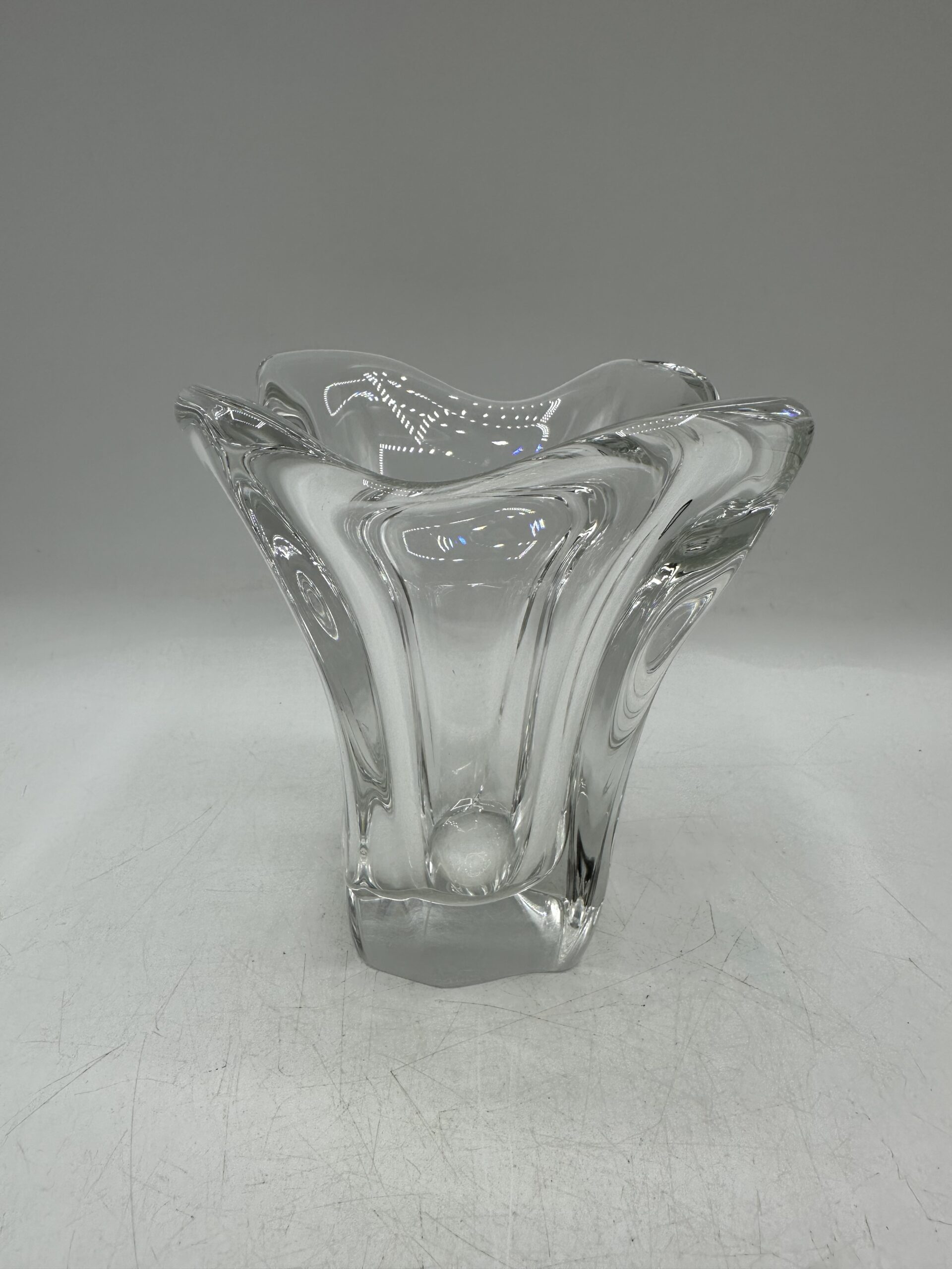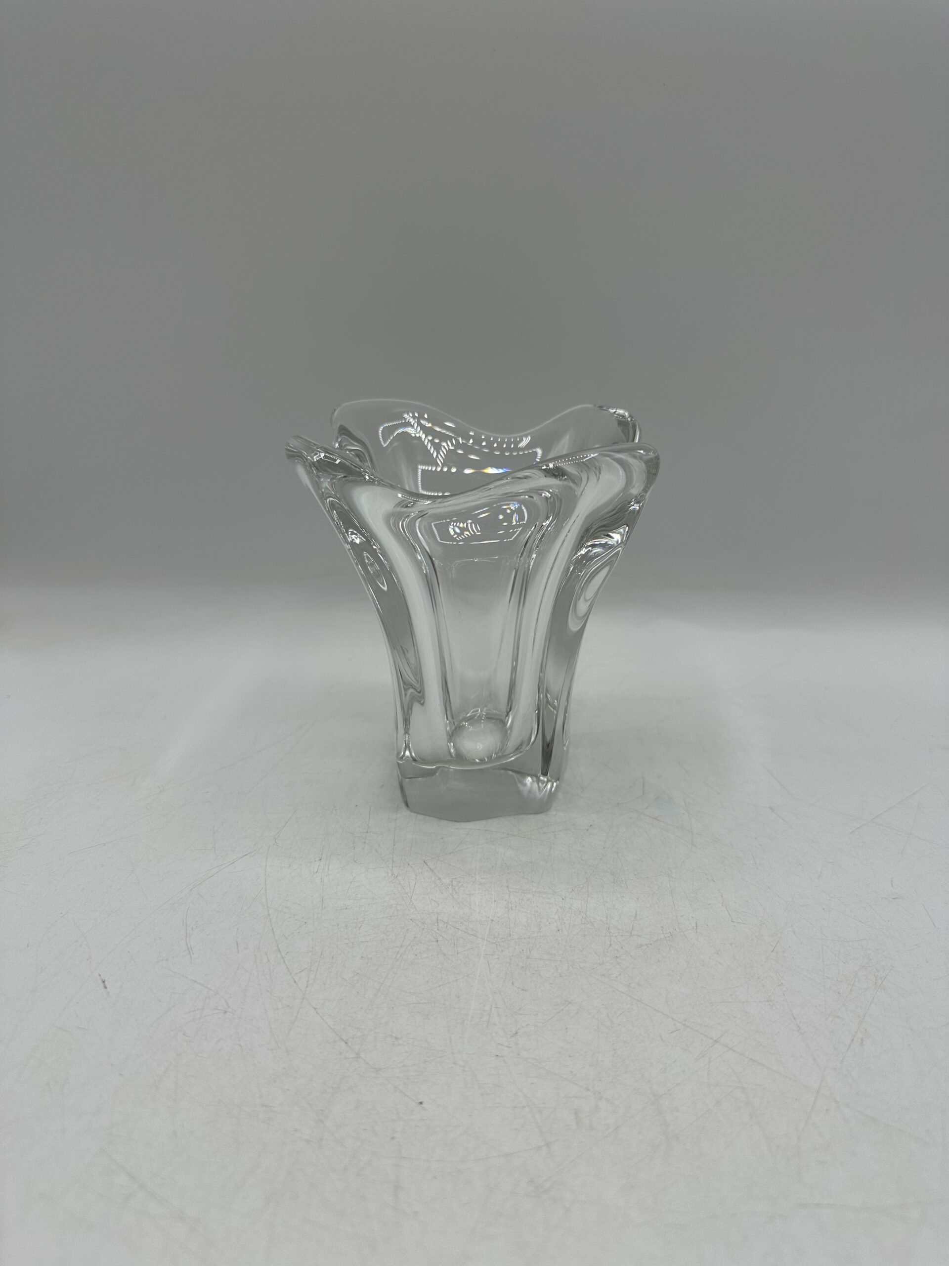 En cristal de Daum, ce vase ancien est épais et lourd, preuve de sa grande qualité. Il est encore très très brillant et n’a pas terni avec les années.