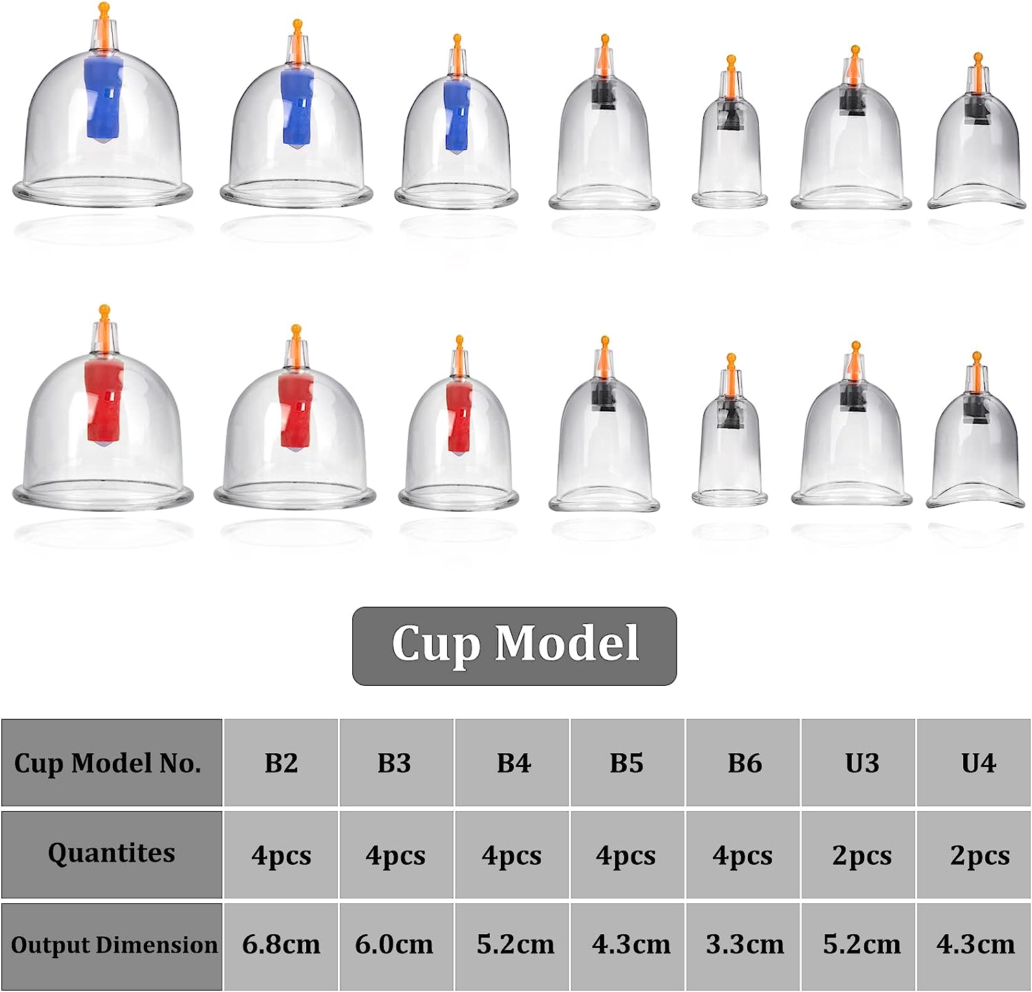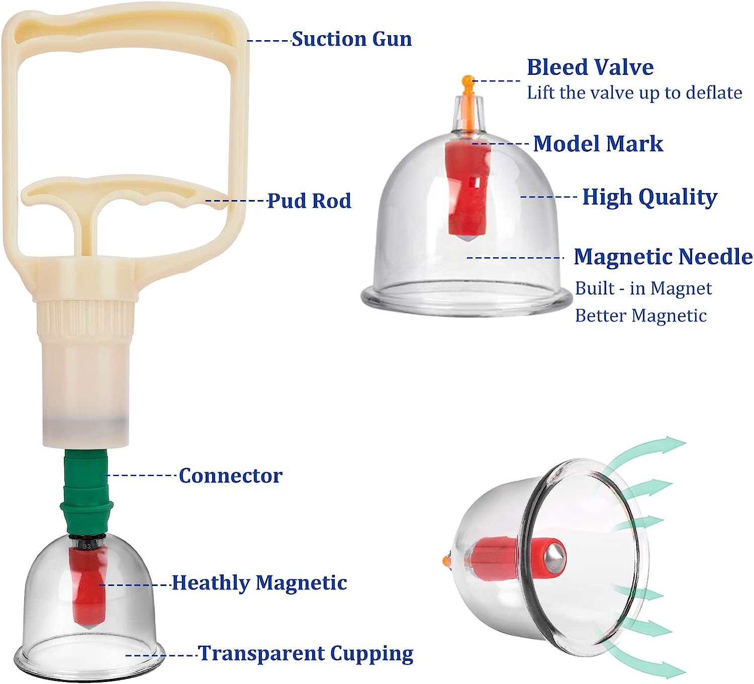 Satisfaction garantie à 100 % : notre ensemble de verres à ventouses offre un service de retour gratuit de 100 jours. S’il y a un problème de qualité, veuillez nous contacter à temps. Contenu de la livraison : 1 pompe à vide avec tuyau long, 24 ventouses en plastique hygiénique, 12 aimants thérapeutiques.